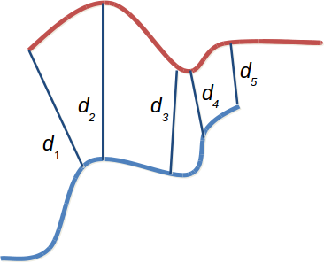 Un autre exemple est le cas où les primitives sont des courbes. L’algorithme ICP (Iterative Closest Point) peut être utilisé pour déterminer une distance entre ces deux courbes, définie comme