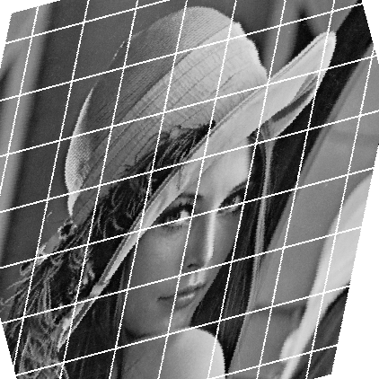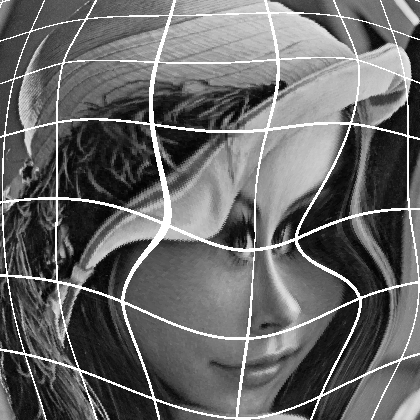 Connaissant les paramètres de déformation \(\theta\) à appliquer sur l’image, la transformation correspondante peut être effectuée. Il s’agit d’un problème d’interpolation.