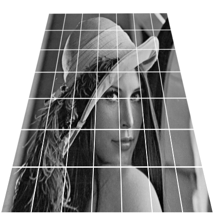 Une déformation perspective est une transformation linéaire définie avec 9 paramètres : \(\theta=\{m_{11}, m_{12}, m_{13}, m_{21}, m_{22}, m_{23}, m_{31}, m_{32}, m_{33}\}\). La matrice de déformation s’écrit :