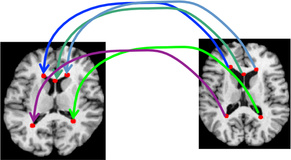 Dans l’approche géométrique (feature-based registration), la déformation à appliquer à l’image source n’est pas définie à partir des intensités des pixels, mais à partir de caractéristiques particulières de l’image. Ces primitives peuvent être :